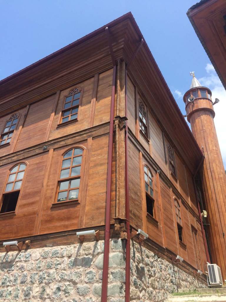 Sonra köyle ilgili bütün görsellerde yer alan ahşap caminin avlusuna gidip içine giriyoruz. Temeli çok eski olmasına rağmen ciddi onarımlar geçirmiş, çok güzel bir köy camii. Sanırım sınırlarımıza en yakın konumdaki cami burasıdır. Çünkü camlarından sağa bakınca Gürcistan toprakları görünüyor. Caminin bahçesindeki bankta oturan bir amcayla tanışıyoruz. Kendisi köyde 20 yıl muhtarlık yapmış. Şimdiyse Istanbul’da bir işyeri var, orada yaşıyormuş. Zaman zaman köye gelip evini barkını kontrol edip, biraz vakit geçirip dönüyormuş. Eski hikayelerinden paylaştı kısa sohbetimiz sırasında ve vedalaşarak ayrıldık.