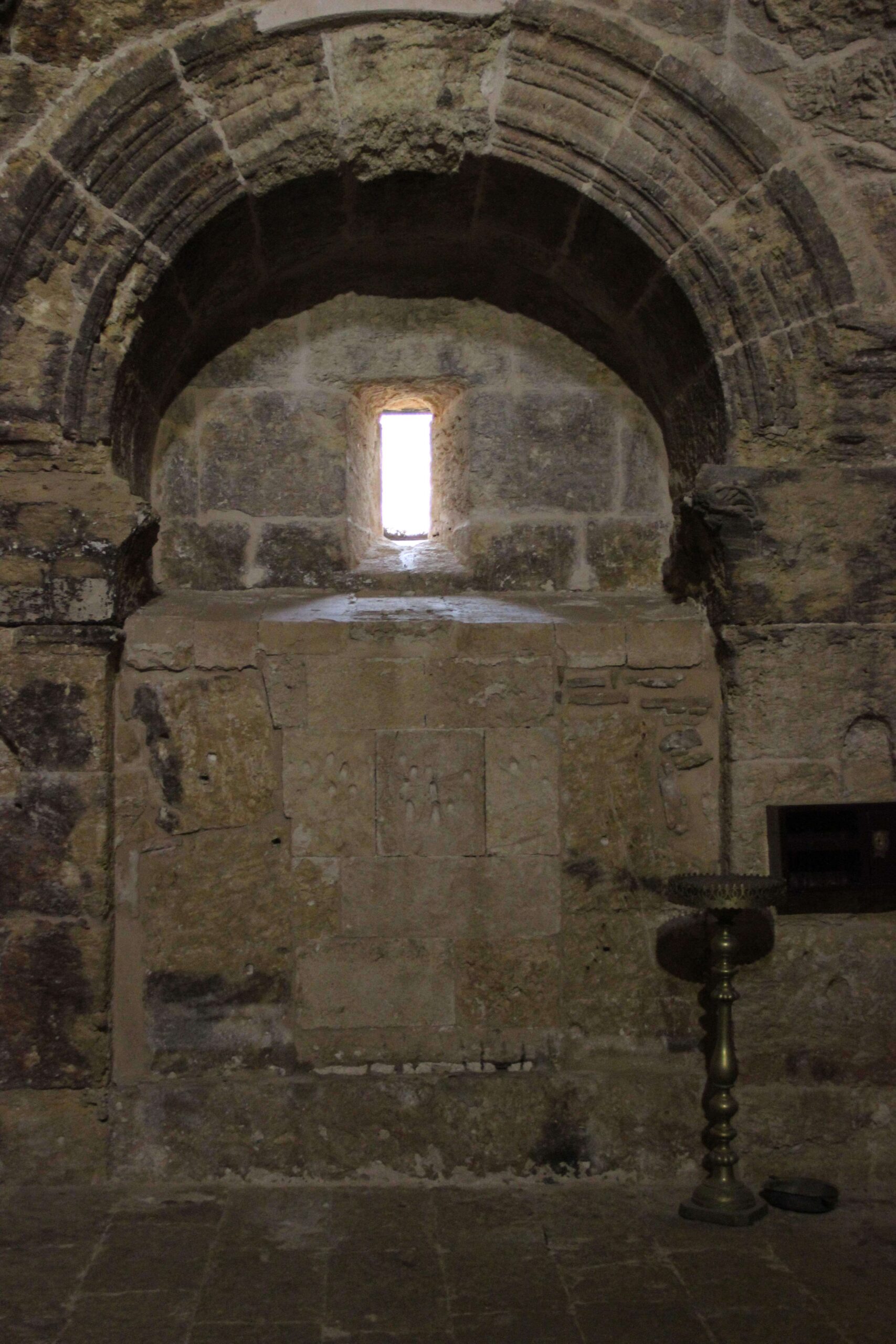 Bu karanlık odada bulunan tek pencere doğuya bakıyor. Güneş ışınlarının girmesiyle kaybolması arasında geçen sürede ibadet ediliyor. Asırlar boyunca, yüzlerini pencereye, güneşe dönerek burada bulunmuş ve devrini tamamlamış insanları hayal ediyor, ürperiyor insan.