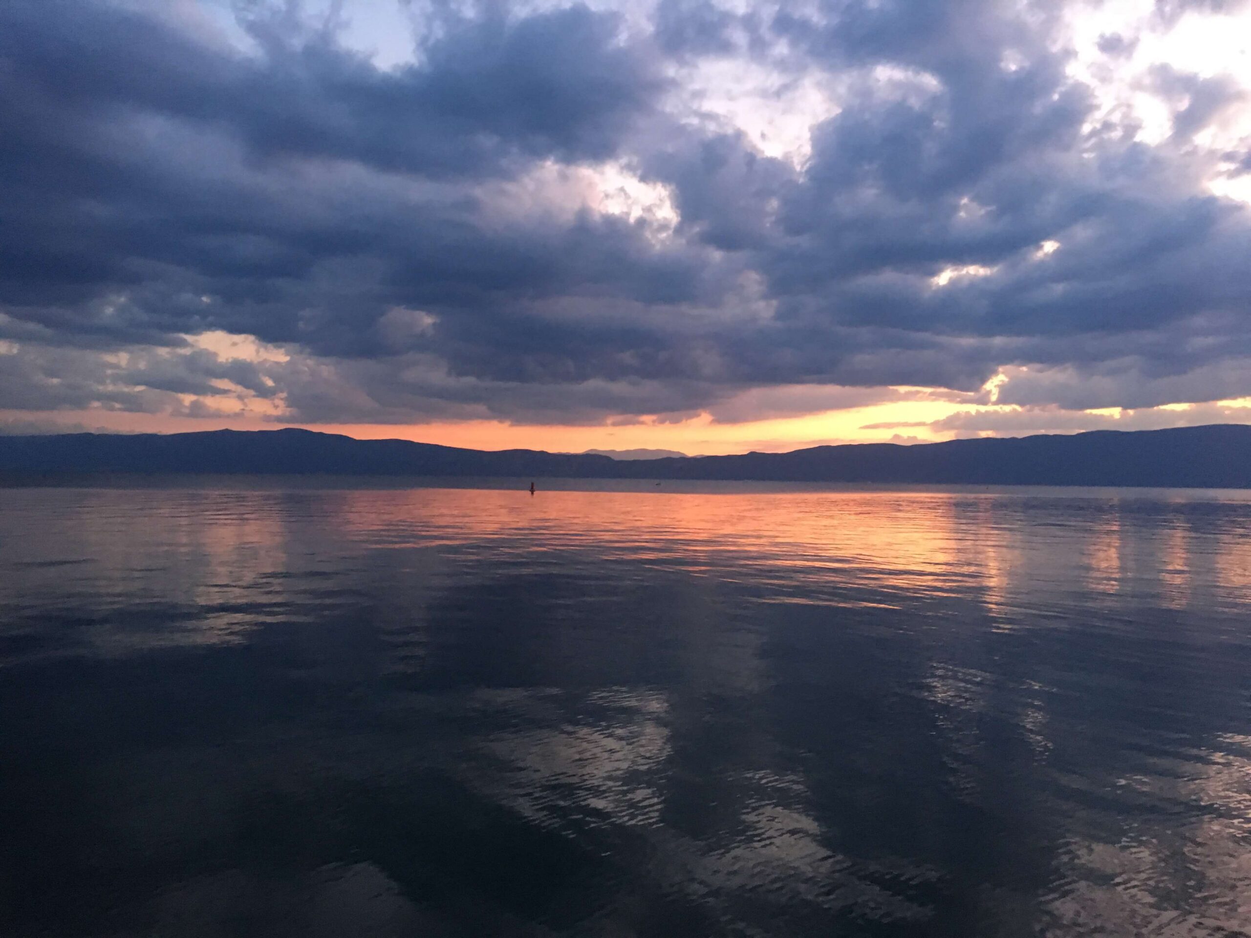 Ohrid’de, Arnavutluk üzerine düşen gün batımı