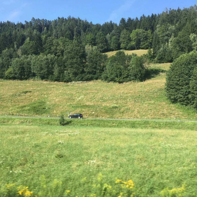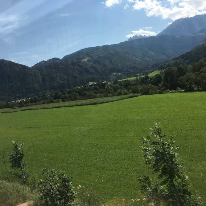 Dörder günlük Münih ve Salzburg izlenimleriyle yüklü zihnim onların tadını sindirmekle meşgulken Salzburg Hbf’den hareket eden bir öğle öncesi treninin kompartımanındayız. Altı kişilik oturma alanının üçünde biz varız. Bilet numaralarımızın hepsi cam kenarına denk düşmüyor. Ancak insan bir yolcukta aracın içine doğru yönelmiş olmaktansa pencerenin dışındaki hayata doğru bakıyor olmayı daha çok istiyor. En azından benim gibi yolculukları bir arınma durağı olarak gören birisiyse kişi öyle camın önünde hızla geçenleri hatıra defterine yapıştıra yapıştıra ilerlemek istiyor. Bu defa da öyle oluyor. En azından cam kenarına denk gelen bir koltuk numaramız var. Diğer koltuklarda seyahat edenler bildiğim diller dışında sözcükler kullanarak telefon görüşmeleri yapıyorlar. Birbirlerinden bağımsızlar ama aralarında derinliksiz konuşmalar yapacak kadar anlaşıyorlar.