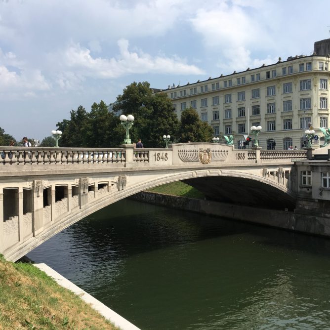 Üçlü Köprü, 1842’de yapılmış. Üç köprüden oluşan bir grup. Kuzeybatı Avrupa, Güneydoğu Avrupa ve Balkanlar’ı birbirine bağladığına inanılır. Bu taş köprü, Ljubljana’nın eşsiz bir mimari mücevheri olarak kabul edilir.