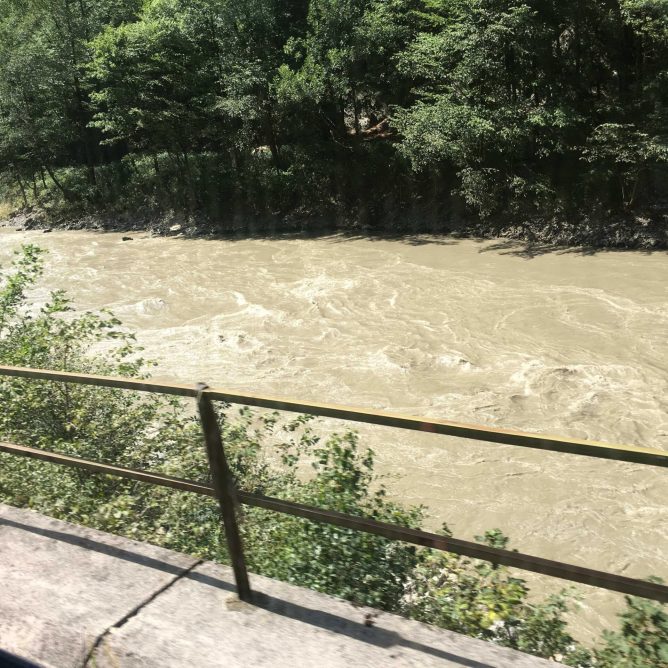 Salzburg Merkez Tren İstasyonundan ayrılış. Camın hemen ilerisinde coşkun bir salınımla buradayım diyen Salzach Nehri dağlardan yağmurla inmiş toprak partiküllerini gövdesine sığdırmış şehre doğru koşmakla meşgul
