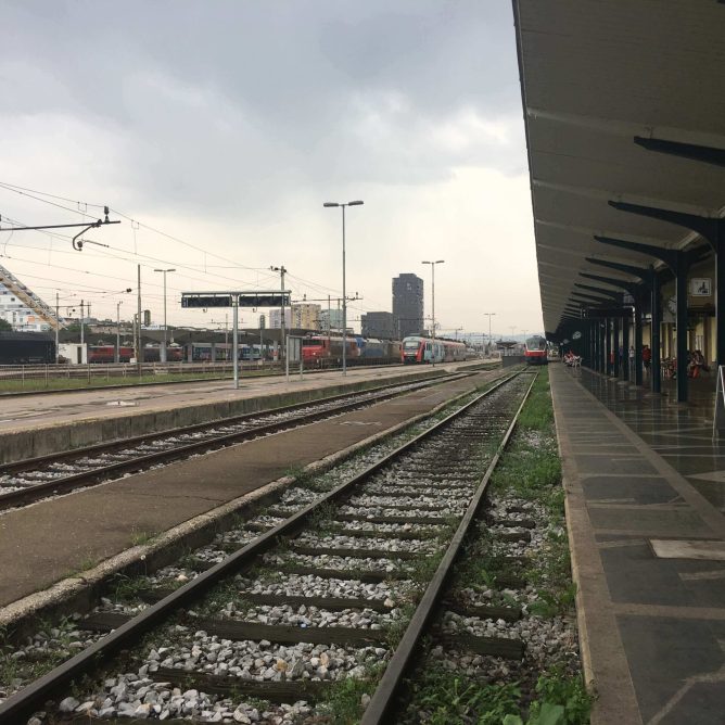Ve nihayet yorgun bir kimlikle bizi karşılayan Ljubljana Merkez Tren istasyonunun peronları, parke taşlarının çatlakları arasında buradayız deme telaşındaki otsu bitkiler, bir grilik