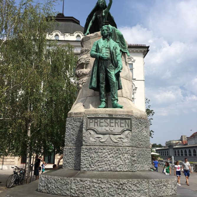 Adını Slovenya’nın ünlü şairi France Preseren’den alan Preseren Meydanı. Franciscan Kilisesi ve Triple Köprüsü de bu meydanla bağlantılı