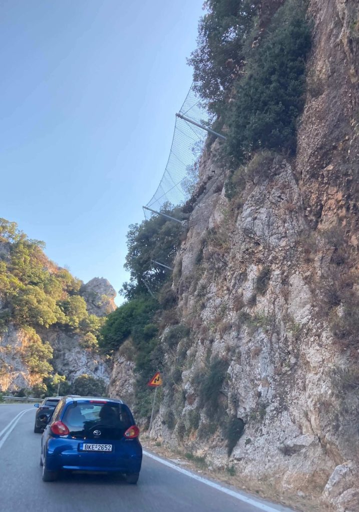 Yolculuğumuz büyük oranda Orta Yunanistan’da geçti. Yunanistan, Makedonya, Trakya, Epirus, Teselya ve Mora olmak üzere beş coğrafi bölgeye ayrılıyor. Ülke topraklarının çok önemli bir bölümü (4/5) dağlık. Hal böyle olunca yollar ya dağların tabanlarındaki vadilerden ya da tünellerle geçilerek dağların yükseklerinden ilerliyor. Bu yılki seyahatimde yollara dair dikkatimi çeken bir diğer durum uzun uzun olmak üzere çok sayıda otoyol tünelinin yenice yapılmış olduğunu görmek oldu. Özellikle Korint Boğazı ile sonlanan yüksek dağları aşmak için son yıllarda yapılan otoyollara ek olarak çok sayıda tünelden geçtik.