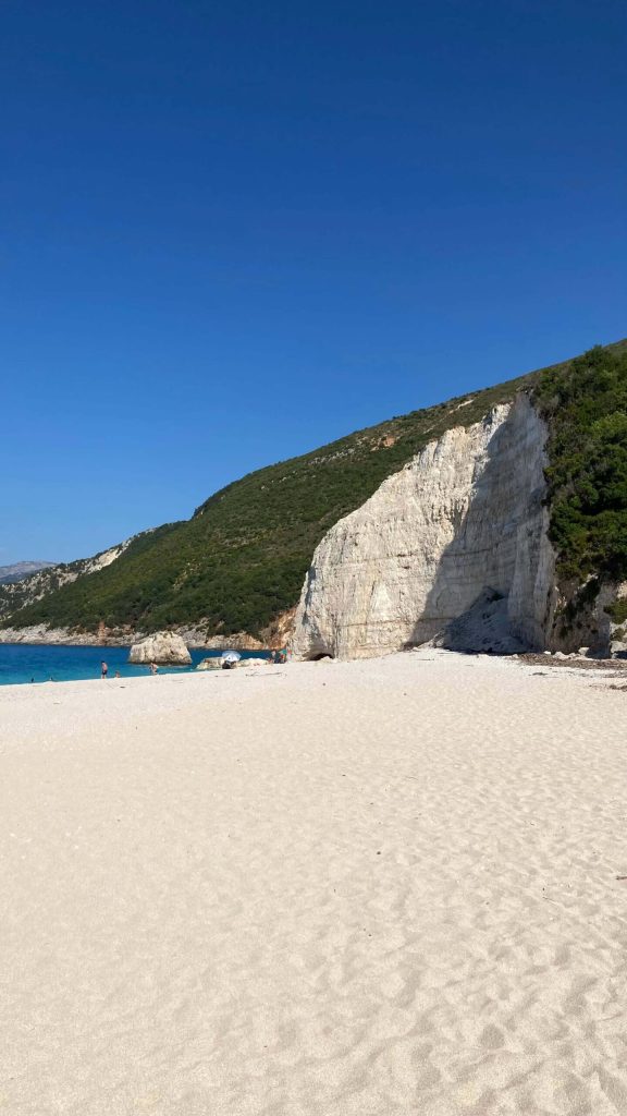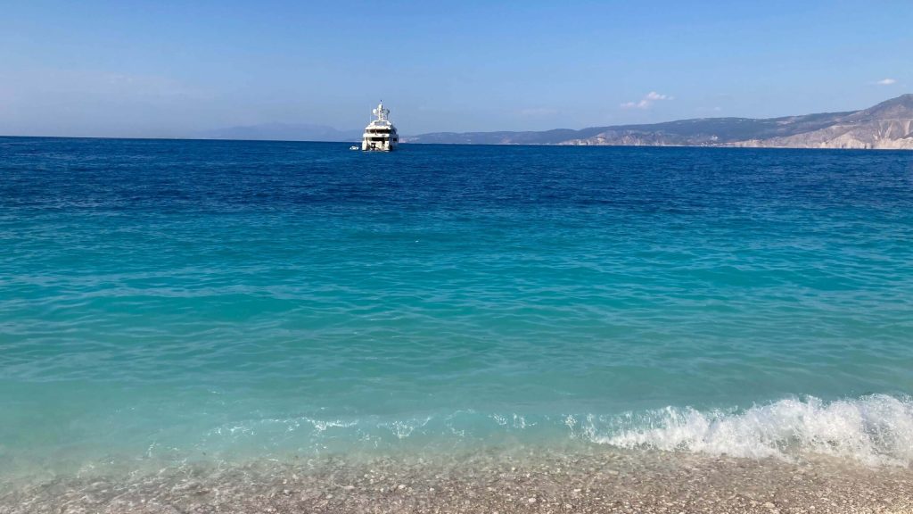 Fiskardo’ya oldukça yakın, hatta içinde bir plaj. Kapalı bir cep gibi, havuz misali bir plaj.