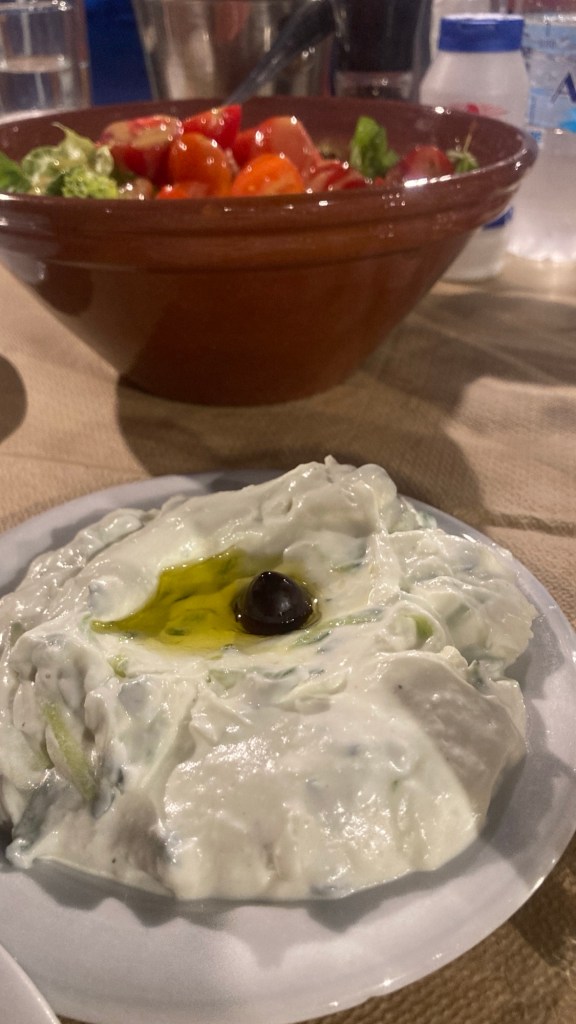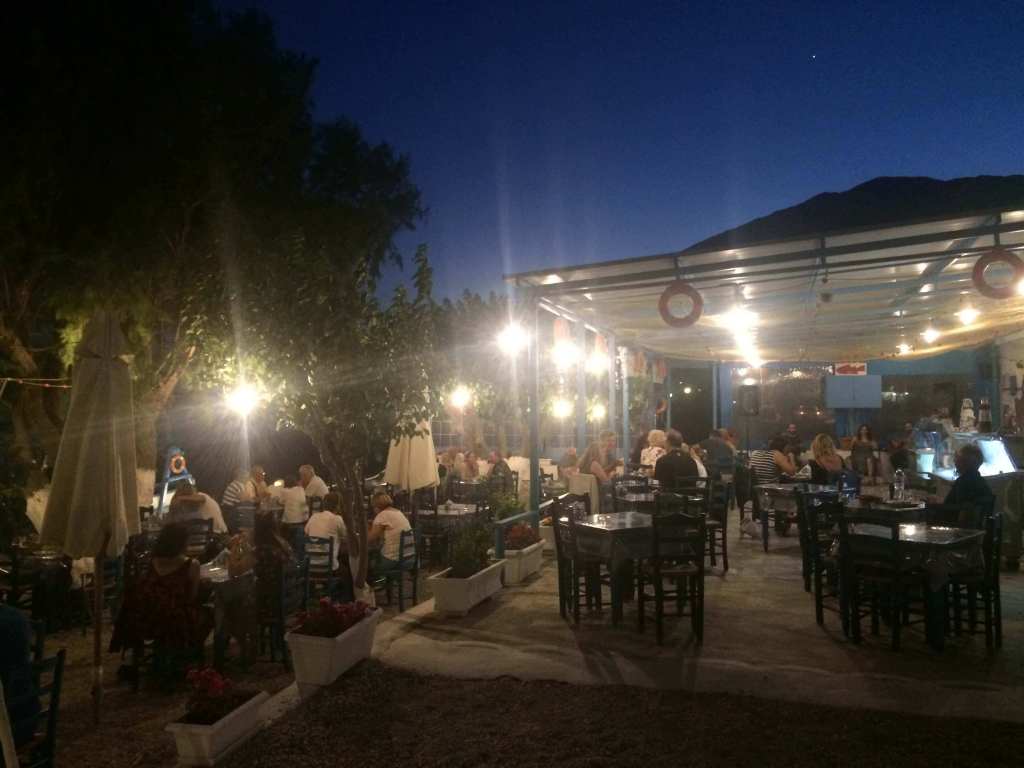 Kampos köyünün taverna ve restoranlarının biriktiği yerde. Yan yana çok sayıda mekandan biri. Tripadvisor‘da üst sırlarda. Porsiyonlar inanılmaz dolu. Yarım tavuk iç pilav ile doldurulmuş ve yanında pişmiş küçük patatesle servis yapılıyor (12 Avro). Lezzeti muazzam. Kalamar tabağı bir kişinin akşam yemeği ihtiyacının tümünü karşılayacak kadar dolu (12 Avro). Karışık deniz ürünleri tabağı inanılmaz zengin (18 Avro). Elbette caciki, Yunan salatası gibi bu ülkede başka türlü yapılan meze türlerinden de yararlanmak lazım. Yemeğin sonunda size ev yapımı uzo, şarap ve revani tatlısı (bazen baklava) ikram ediliyor.