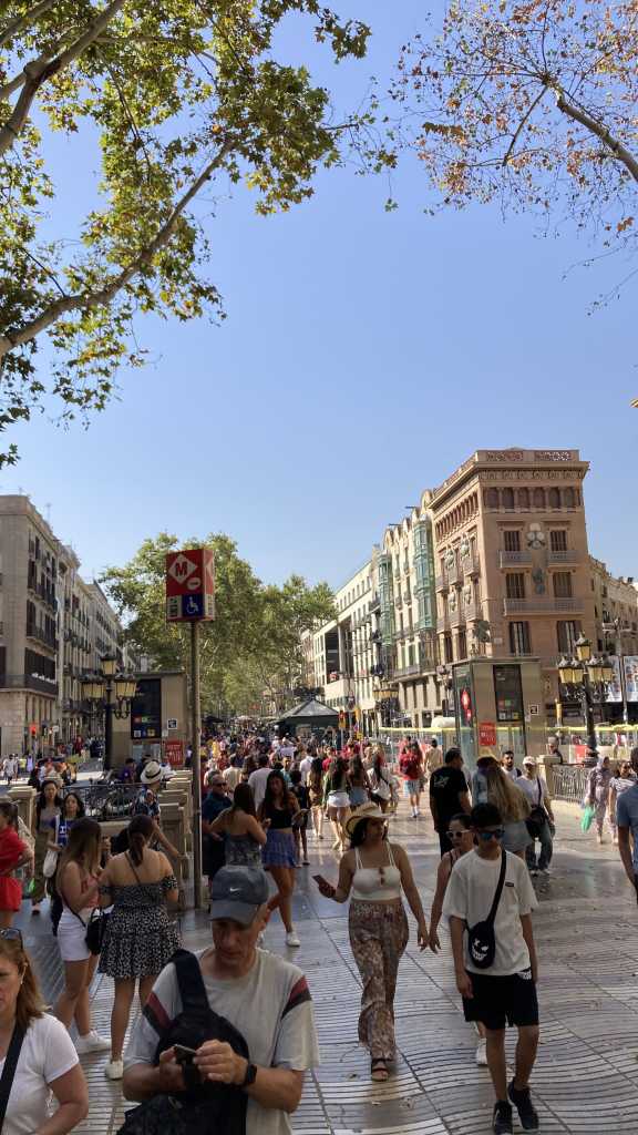Turistin uğramamasına imkan bulunmayan bir Barselona caddesi. Upuzun bir cadde La Rambla. Sokak sanatçıları, çeşitli etkinlikler için bilet satılan yerler/kişiler. Plaça Catalunya’dan başlayıp Port Vell’deki, Kristof Kolomb Heykeline kadar uzanan bir cadde. Eğer turistsen dikkatli olman gereken bir cadde. Her an bir öpücüğe maruz kalabileceğini bilmen gereken cadde.