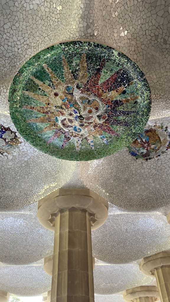 Yukarıda anılan etkinlik alanının altı da başka bir tasarım ve çoklu kullanım önerisi harikası. Direklerin birbirlerine konumu, açıları, tavandaki süslemeler ve diğer pek çok ayrıntı benim bilgimi çok fazla aştığından açıklayamıyorum. Mimar, iç mimar ya da benzeri tasarım işiyle ilgili kimselerin kesinlikle bu şehri ve Gaudi’nin eserlerini incelemesi lazım. Müthiş bir ilham kaynağı olmalı bu sanatlarla ilgili kimseler için.