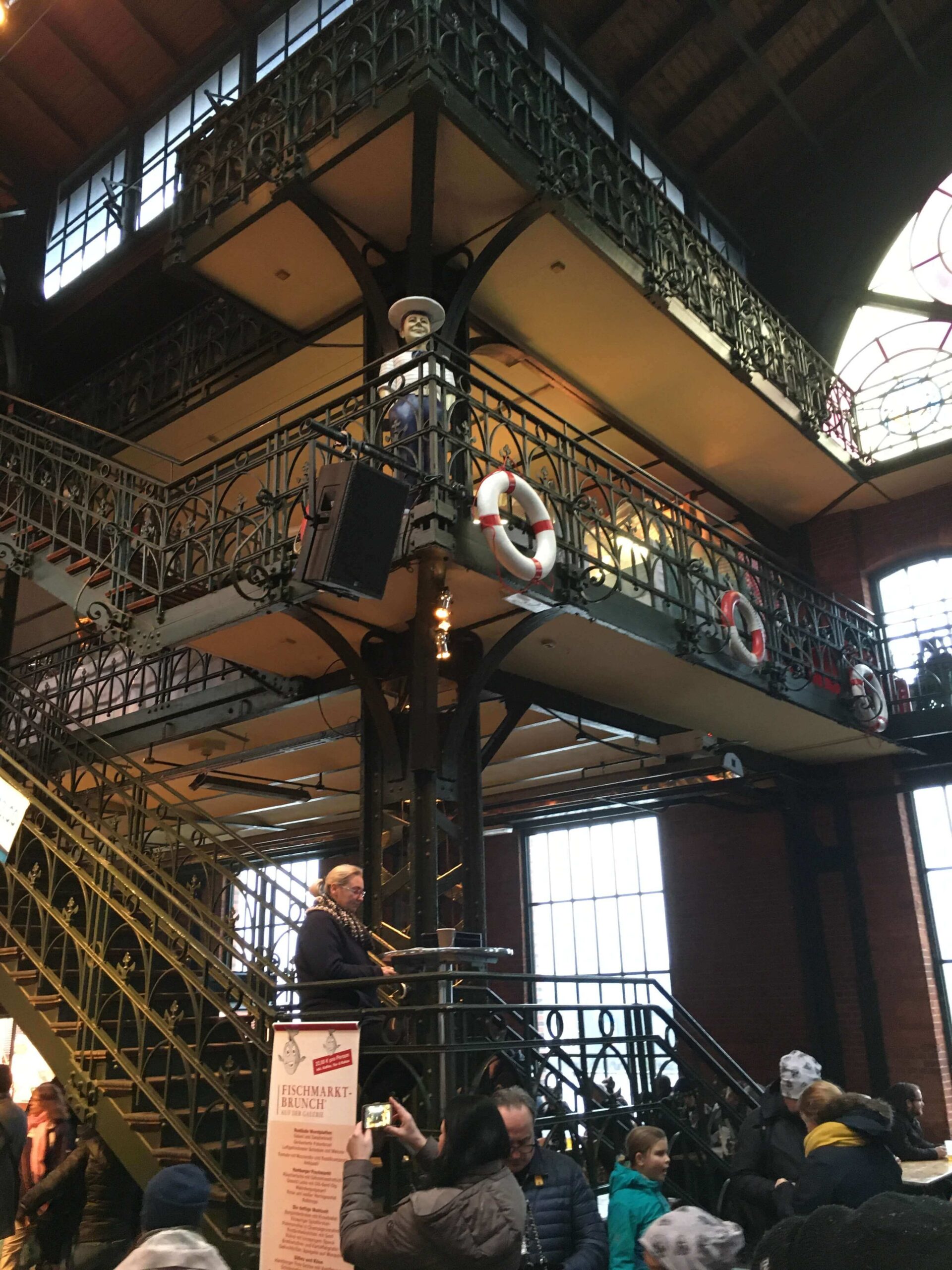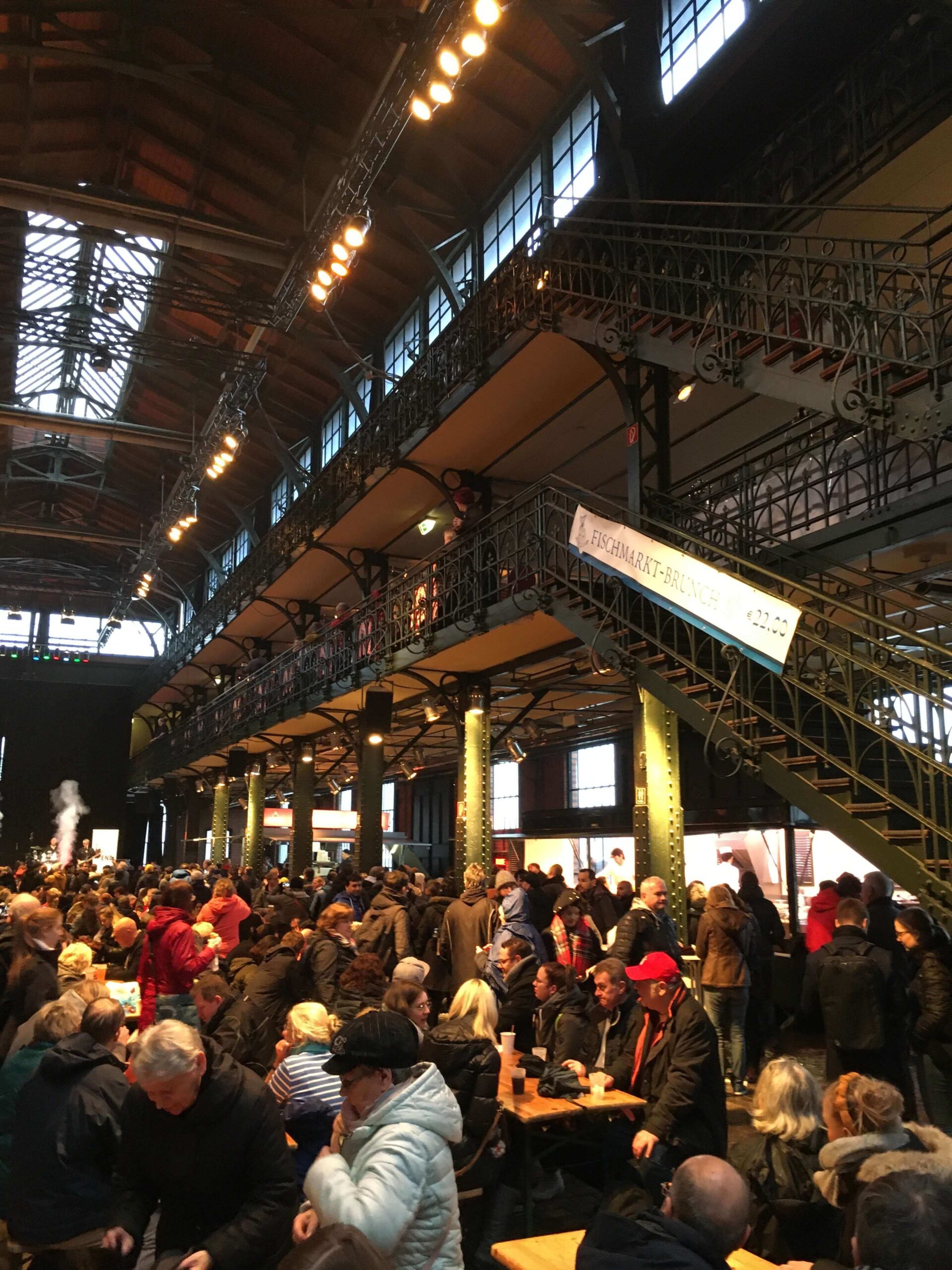 Az ilerde, kırmızı gövdeli, tombul çatılı bina demir, cam ve tuğladan yapılmış eski balık hali. 1896 model. Burada önceleri mezat yapılırmış (balık mezatına kando dendiğini biliyor muydunuz?). Şimdiyse burası bir etkinlik hallesi. Yüzyıllık binada, gruplar sahne alıyor, rock ve jazz konserleri veriyorlar. Sabah beş civarında, bölgedeki (Reeperbahn) eğlence yerlerinden çıkanlar için burası farklı bir pazar sabahı teklif ediyor.